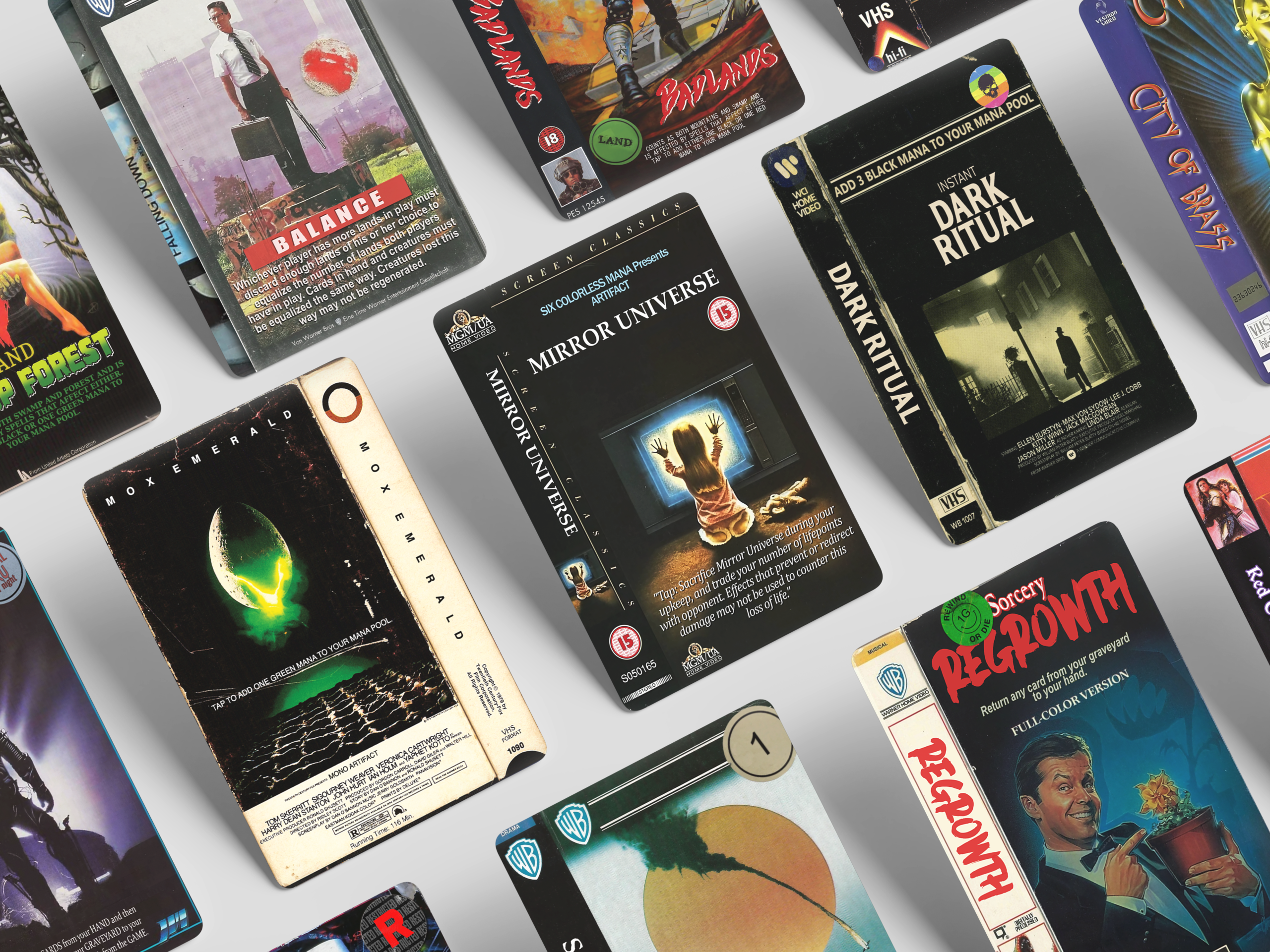 Step back into the ‘80s and ‘90s with this VHS Movie Set, featuring 46 essential EDH staple cards styled after timeless VHS classics. Each card captures the nostalgic charm of vintage movie tapes, bringing a retro twist and a touch of classic cinema to your Commander deck.